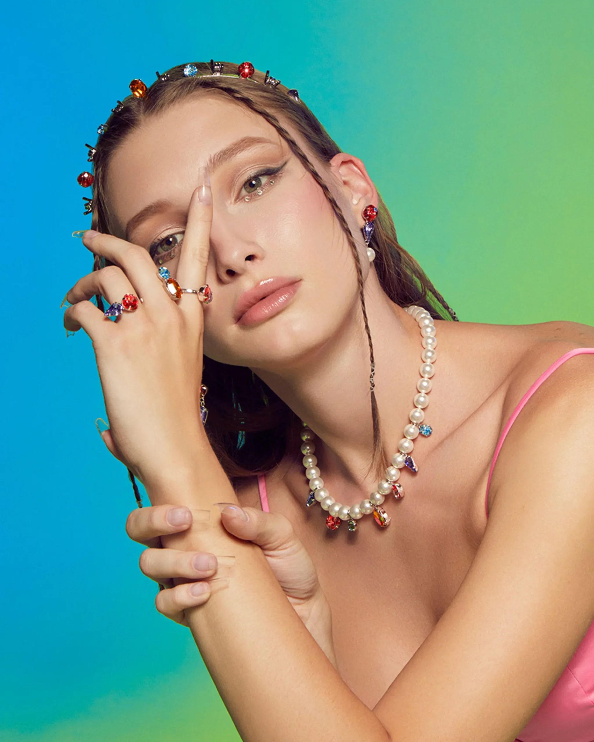 Materials: Rhodium plated brass, Swarovski multi-colored crystal
