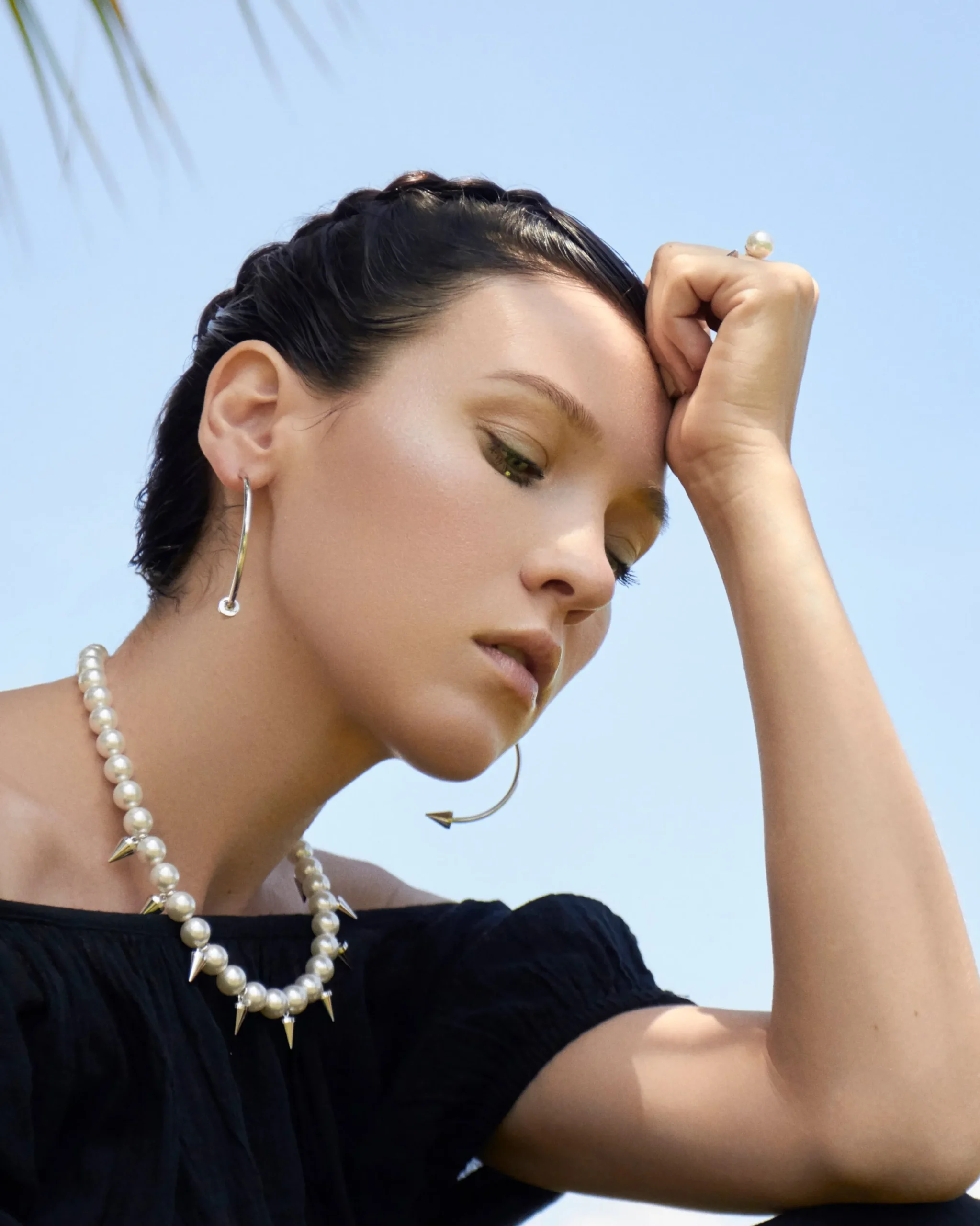 Brass Necklace u0026amp; Spike Plated in Rhodium • 10mm Swarovski Faux Pearls