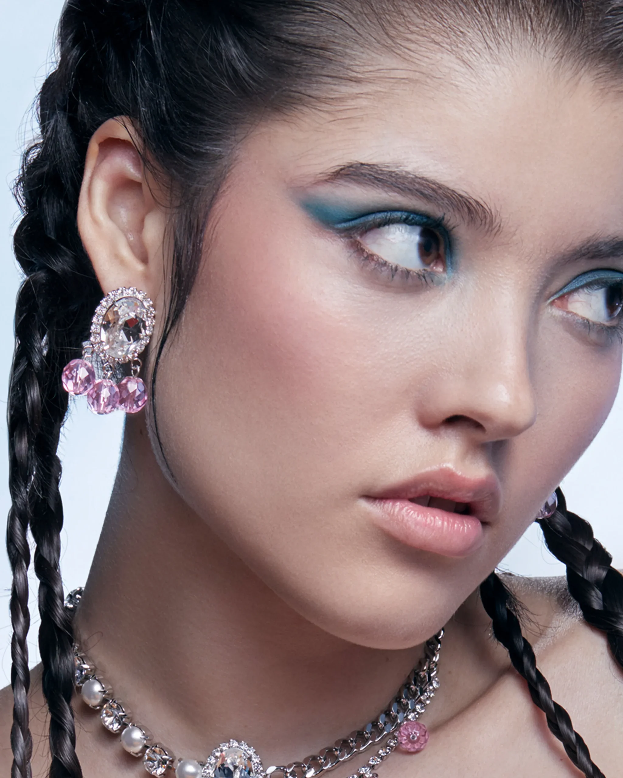 Materials: Rhodium plated brass, Swarovski crystal, Glass bead