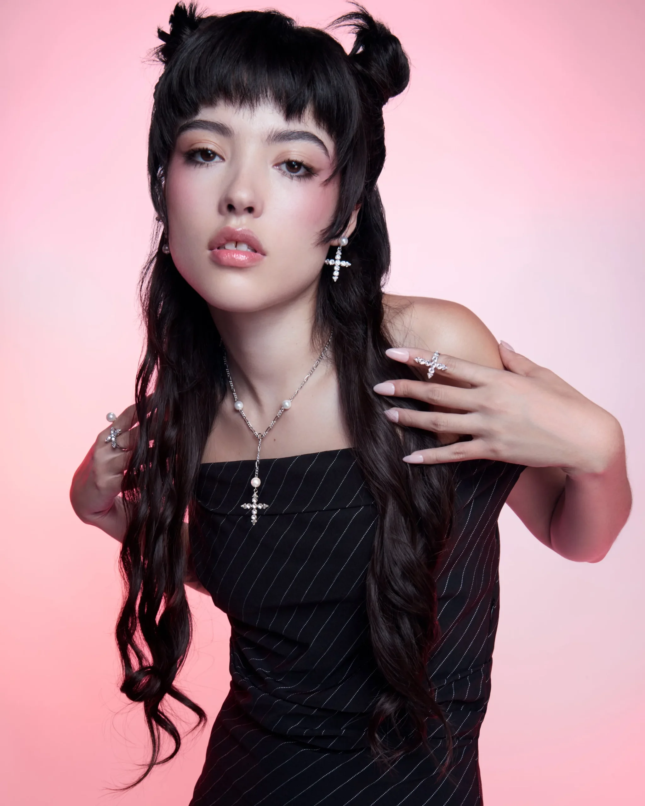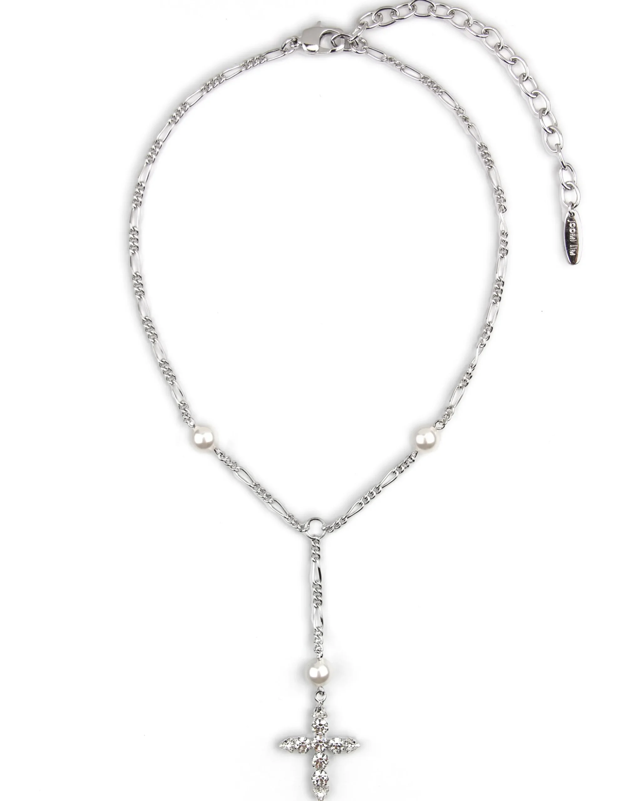 Materials: Rhodium plated brass, Swarovski crystal, Swarovski faux pearl
