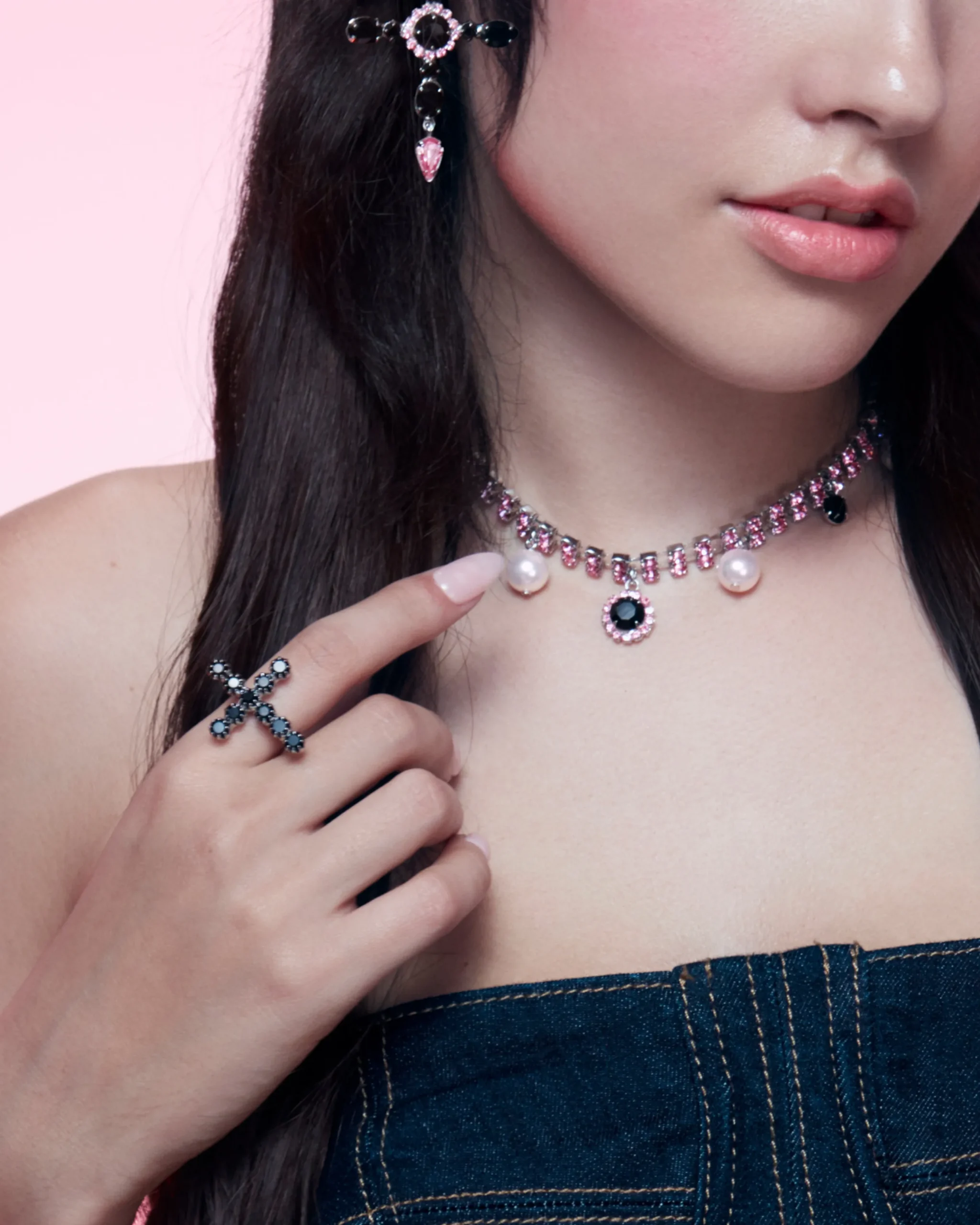 Materials: Rhodium plated brass, Swarovski crystal