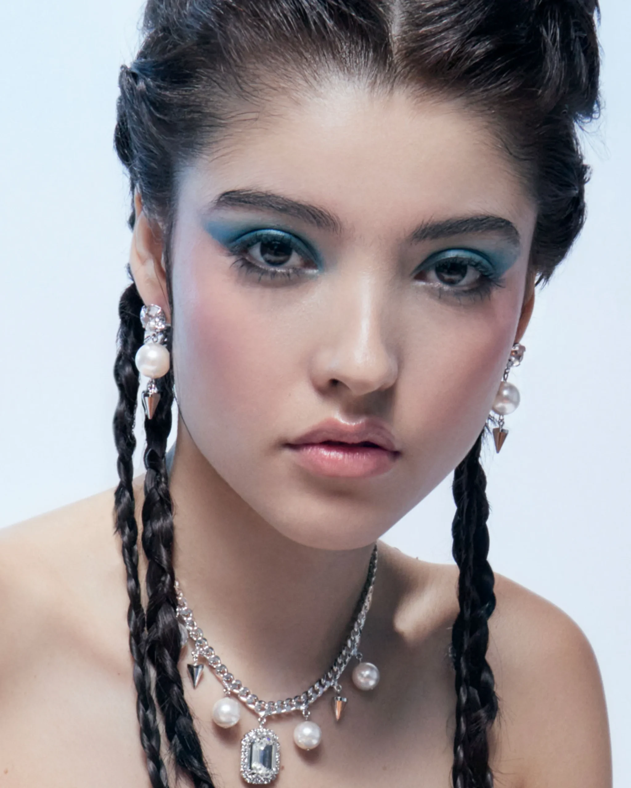 Materials: Rhodium plated brass, Swarovski crystal, Swarovski faux pearl