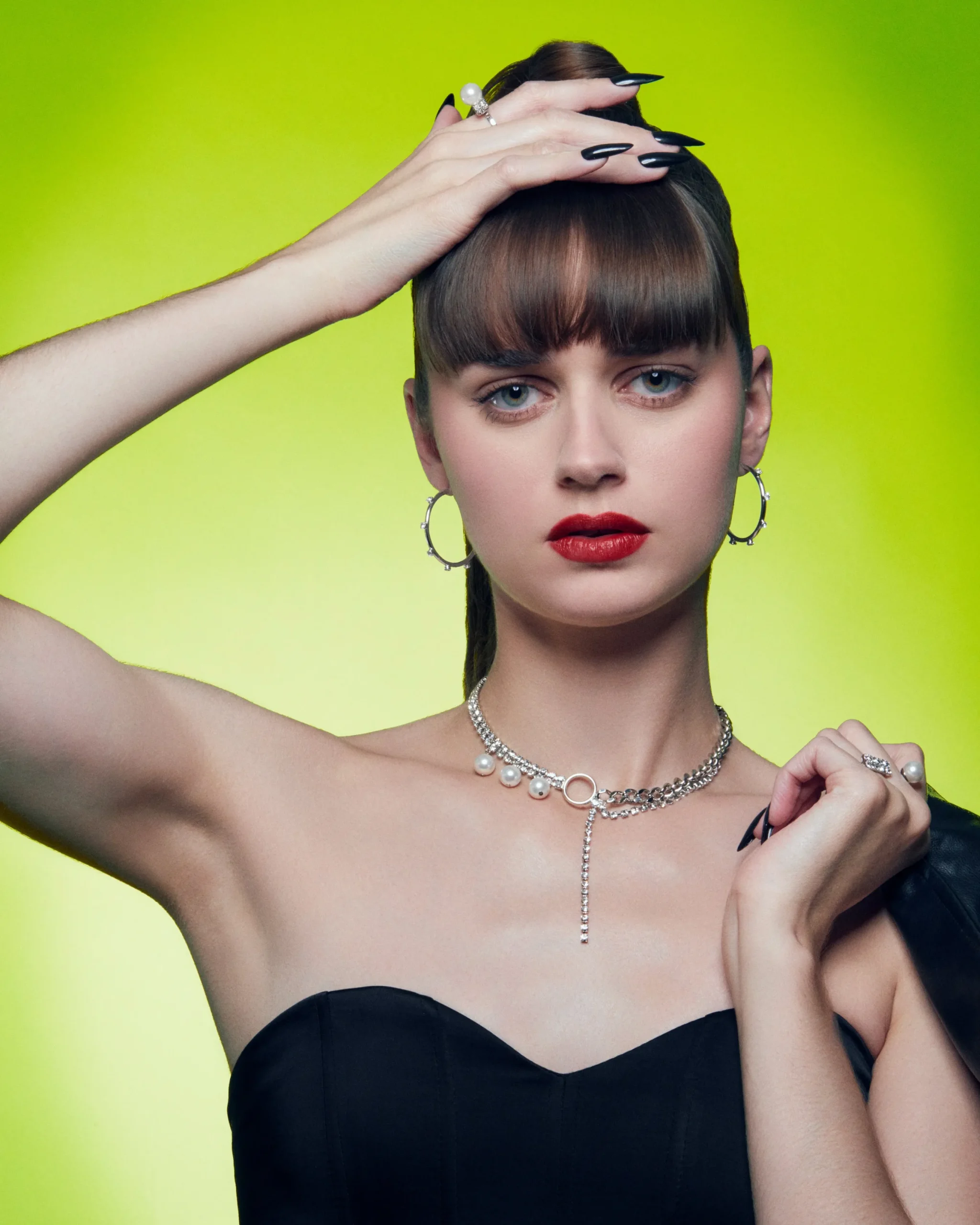 Materials: Rhodium plated brass, Swarovski faux pearl