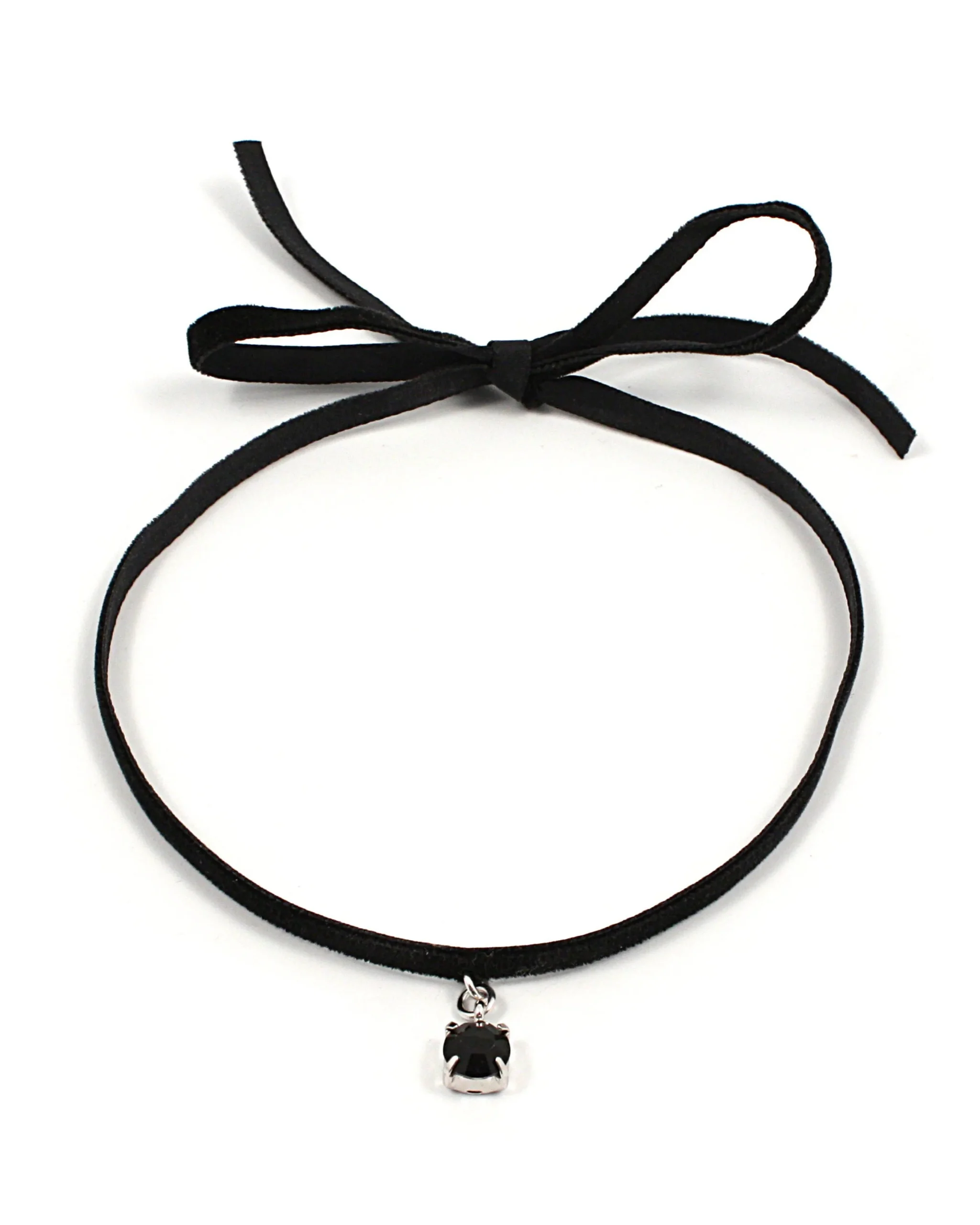 Materials: Rhodium plated brass, Swarovski crystal, velvet ribbon