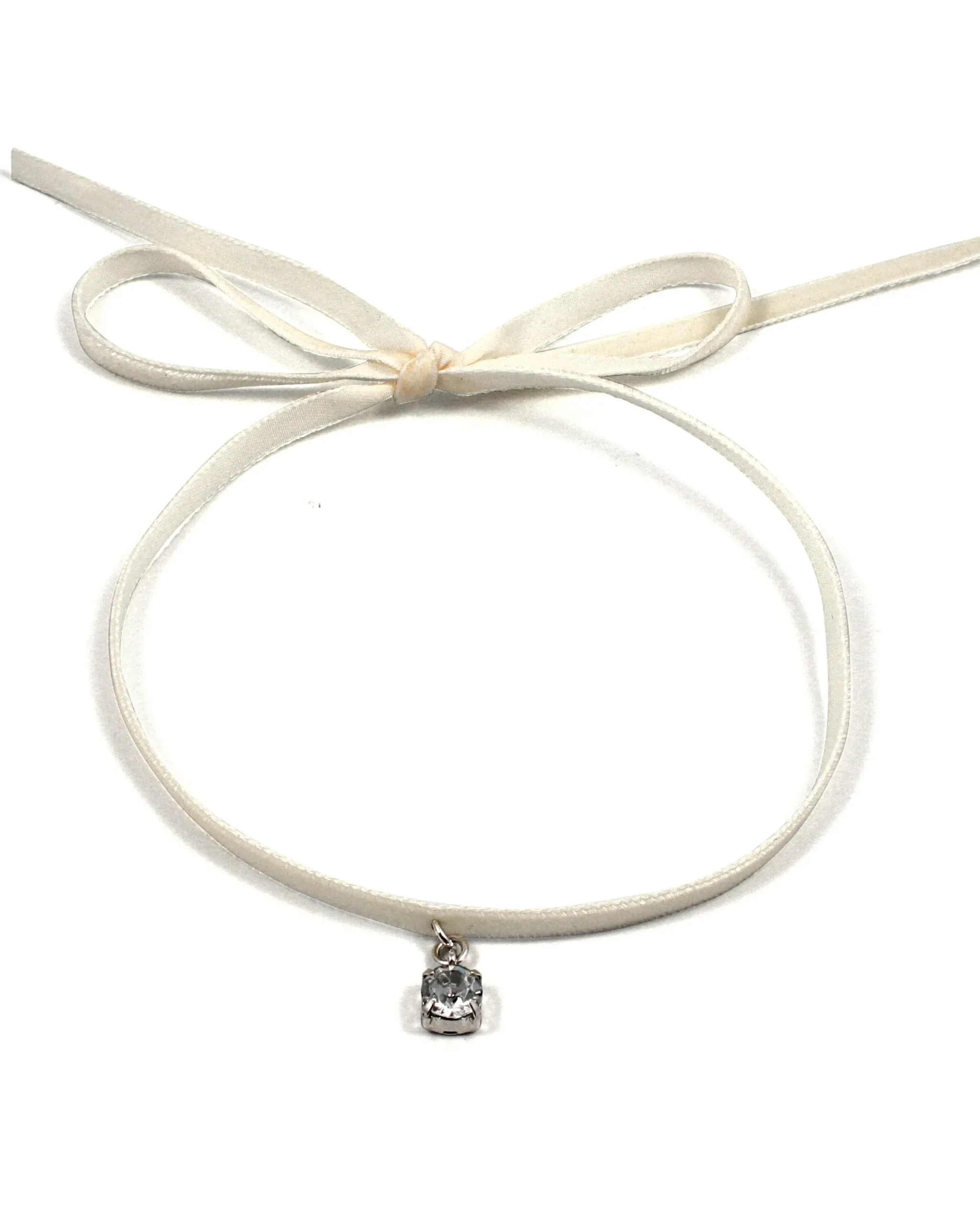 Materials: Rhodium plated brass, Swarovski crystal, velvet ribbon