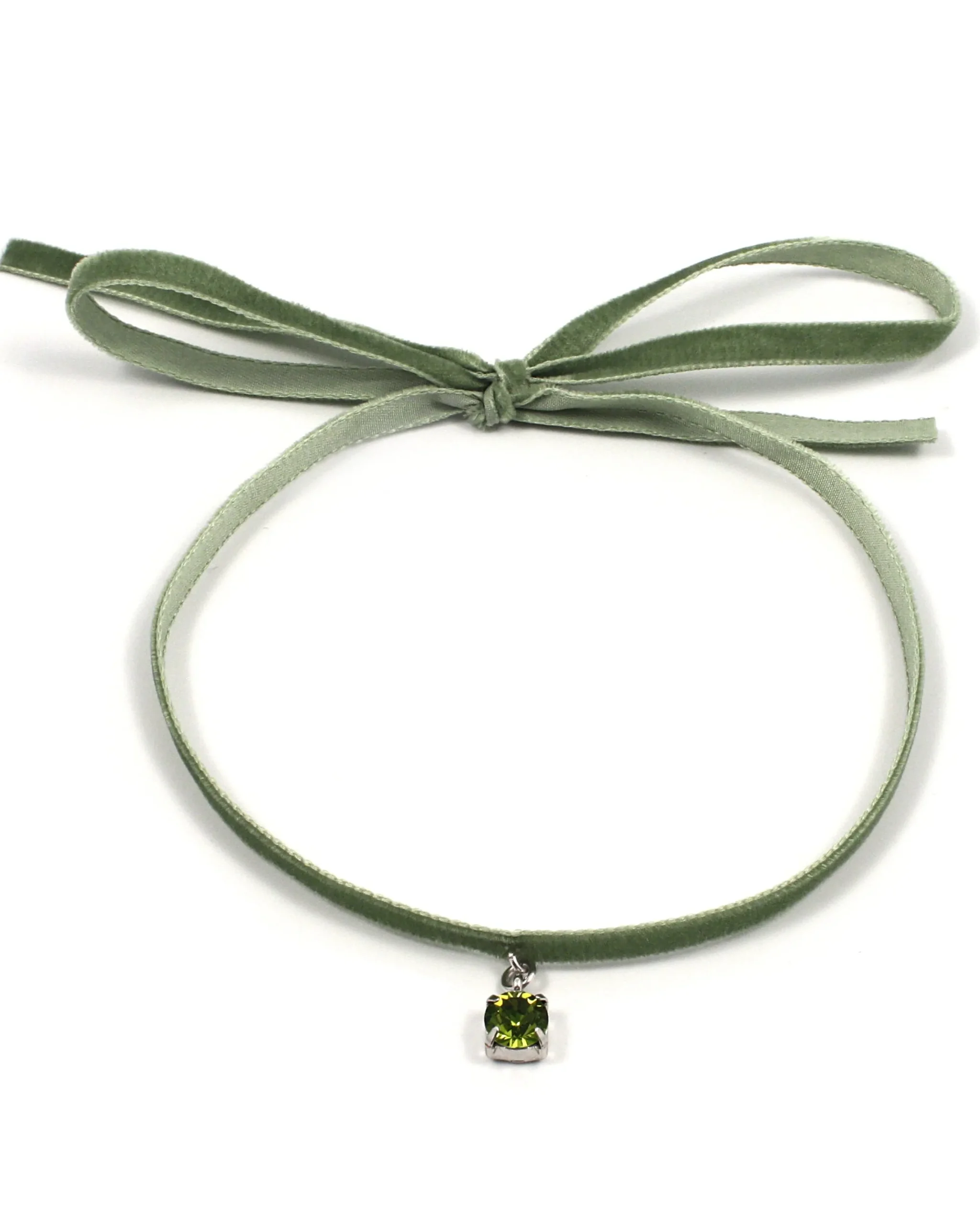 Materials: Rhodium plated brass, Swarovski crystal, velvet ribbon