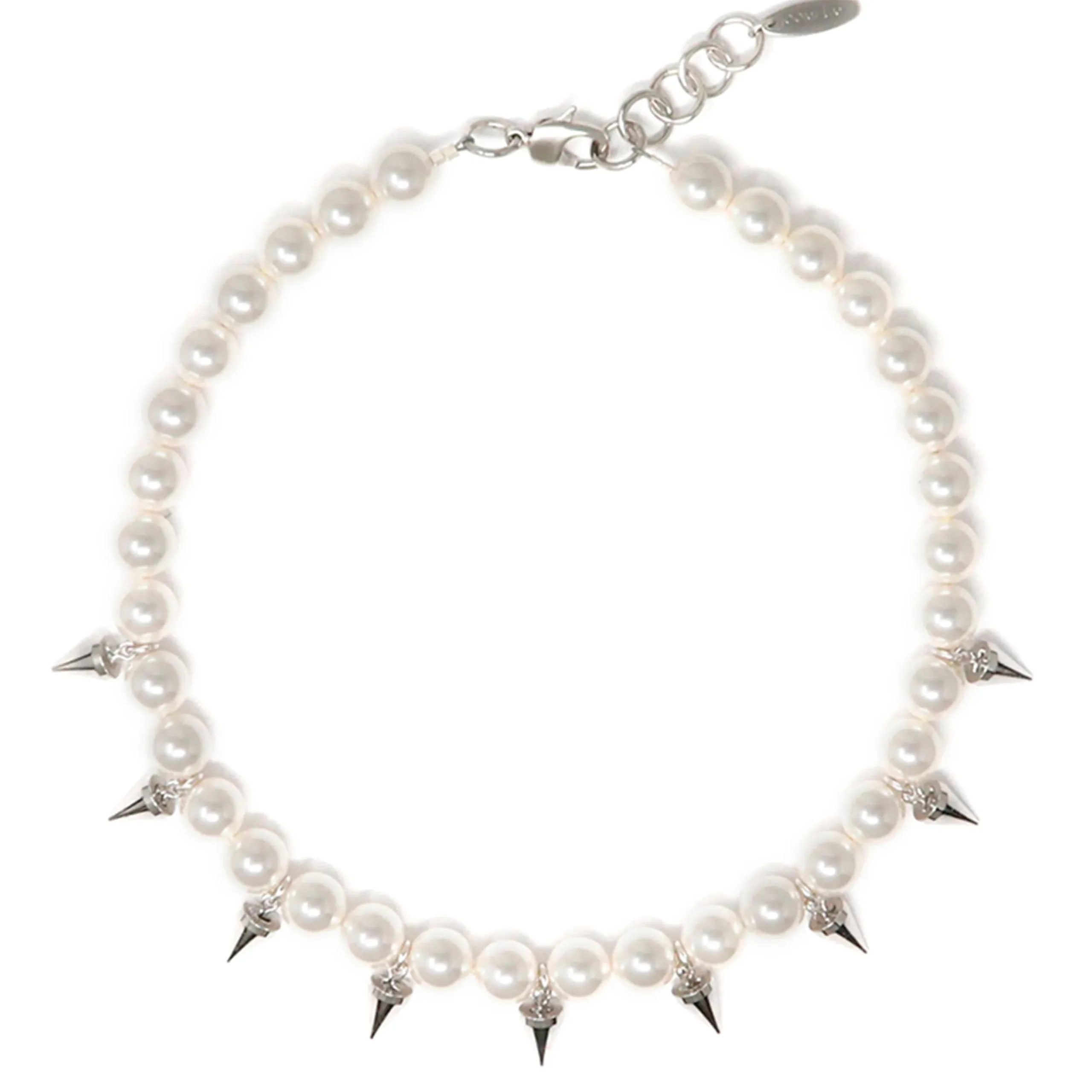 Brass Necklace u0026amp; Spike Plated in Rhodium • 10mm Swarovski Faux Pearls
