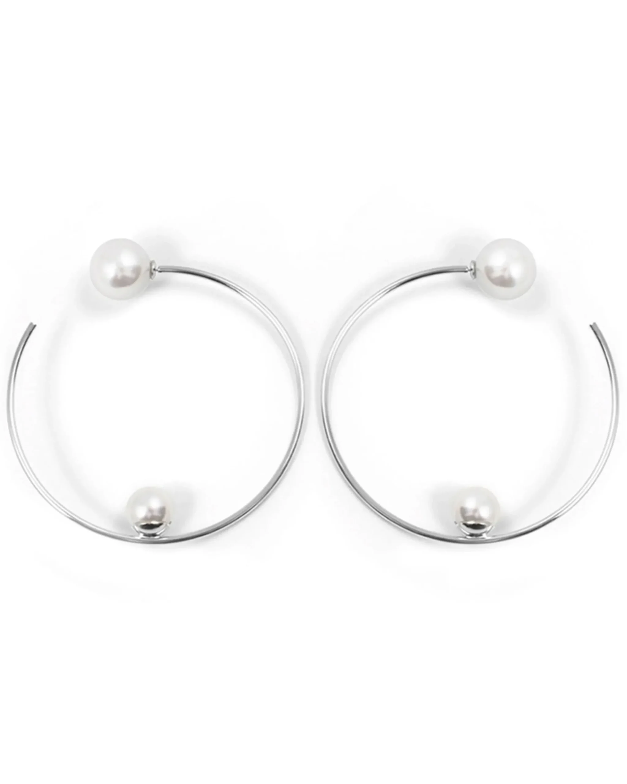 Materials: Rhodium plated brass, 12mm Swarovski faux pearl, 16mm faux pearl back
