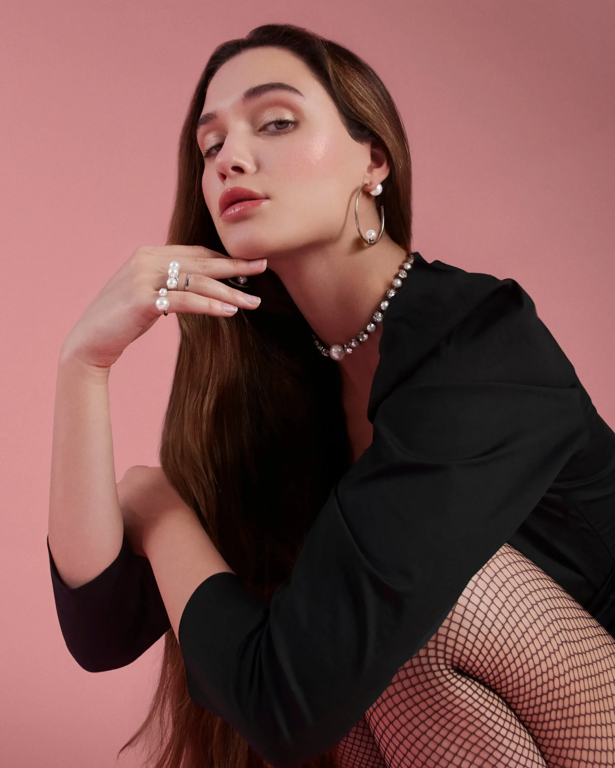 Materials: Rhodium plated brass, 10mm Swarovski faux pearl, 14mm faux pearl back