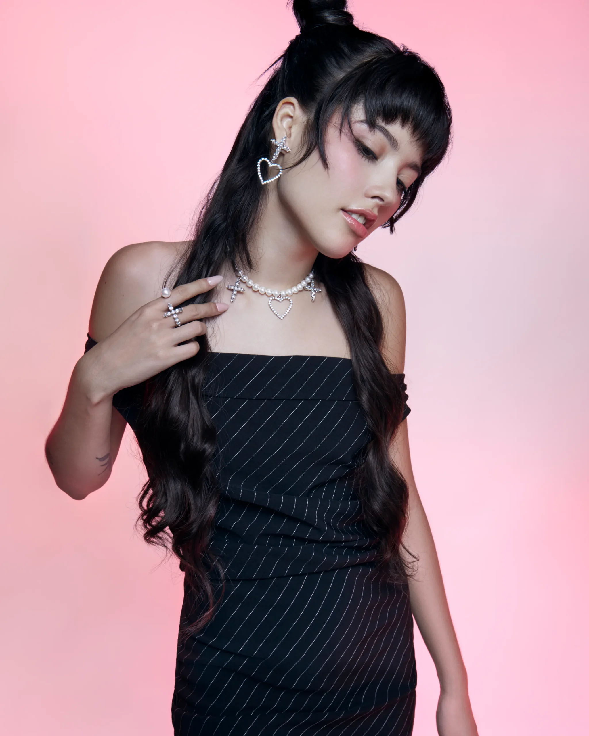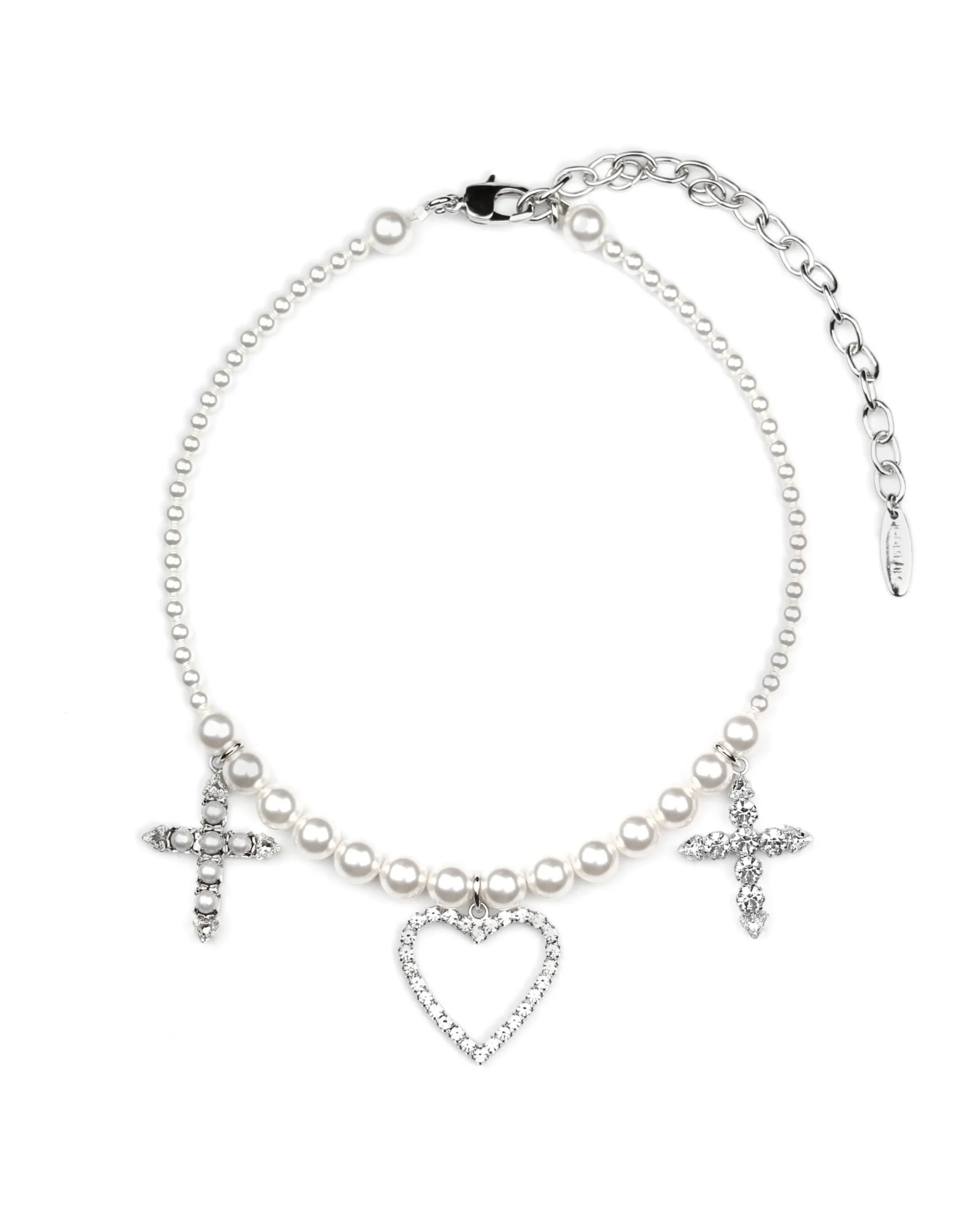 Materials: Rhodium plated brass, Swarovski crystal, Swarovski faux pearl
