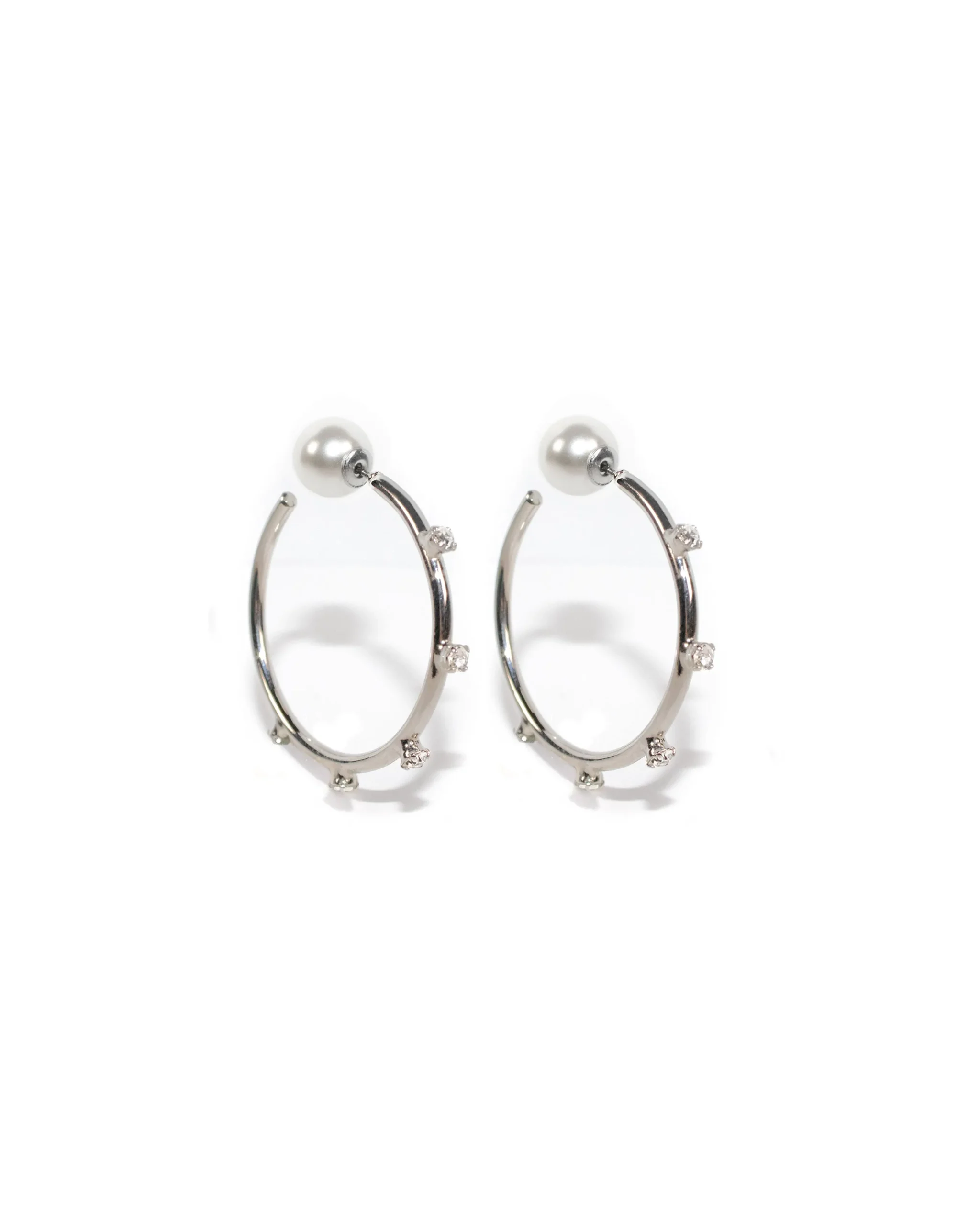 Materials: Rhodium plated brass, Swarovski faux pearl